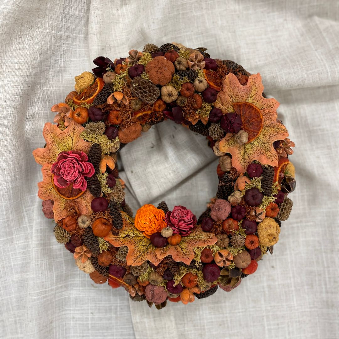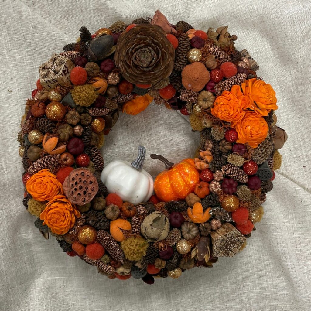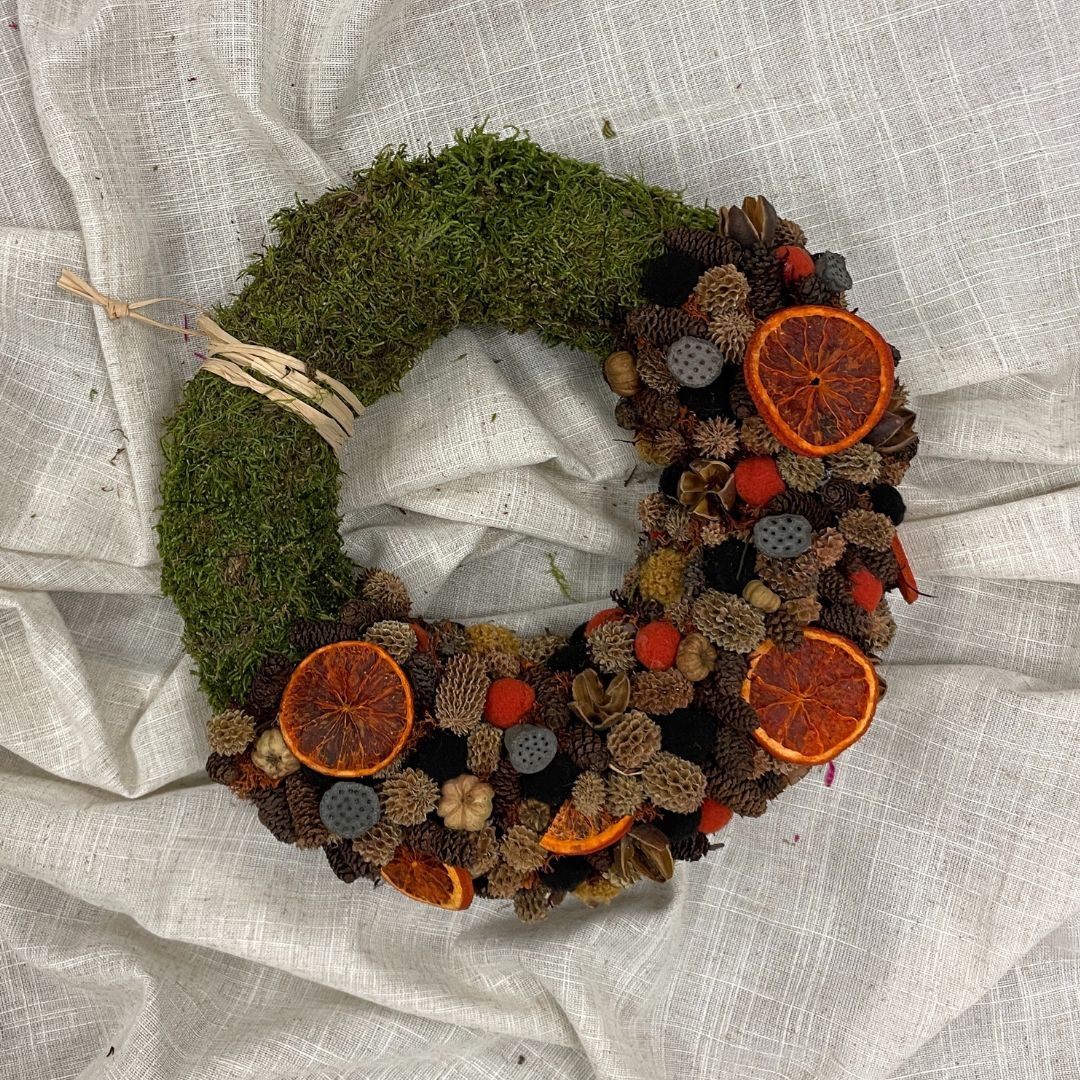 A foglalkozás során korlátlanul használhatod a koszorú készítéshez tartozó terméseket, kiegészítőket, díszítő elemeket.